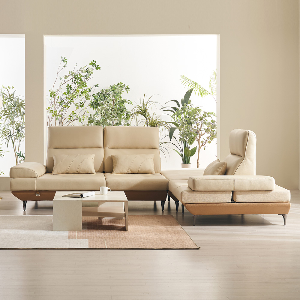 쉐우드 마벨 6인용 코너형 이태리 천연통가죽 기능성 스윙 소파 렌탈 4년약정 렌탈료69,000 원/월